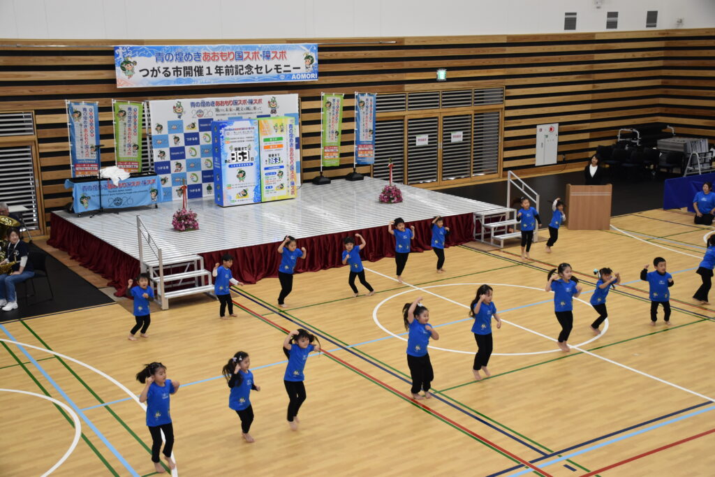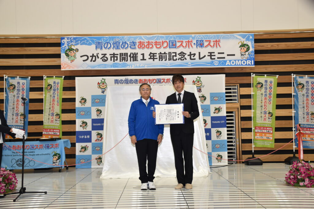 10月12日(日)、青の煌めきあおもり国スポ・障スポつがる市開催1年前記念セレモニーを開催しました。協賛企業感謝状贈呈式やカウントダウンボード除幕式、もりた保育園・車力中学校の皆さんによる青の煌めきダンス披露を行いました。