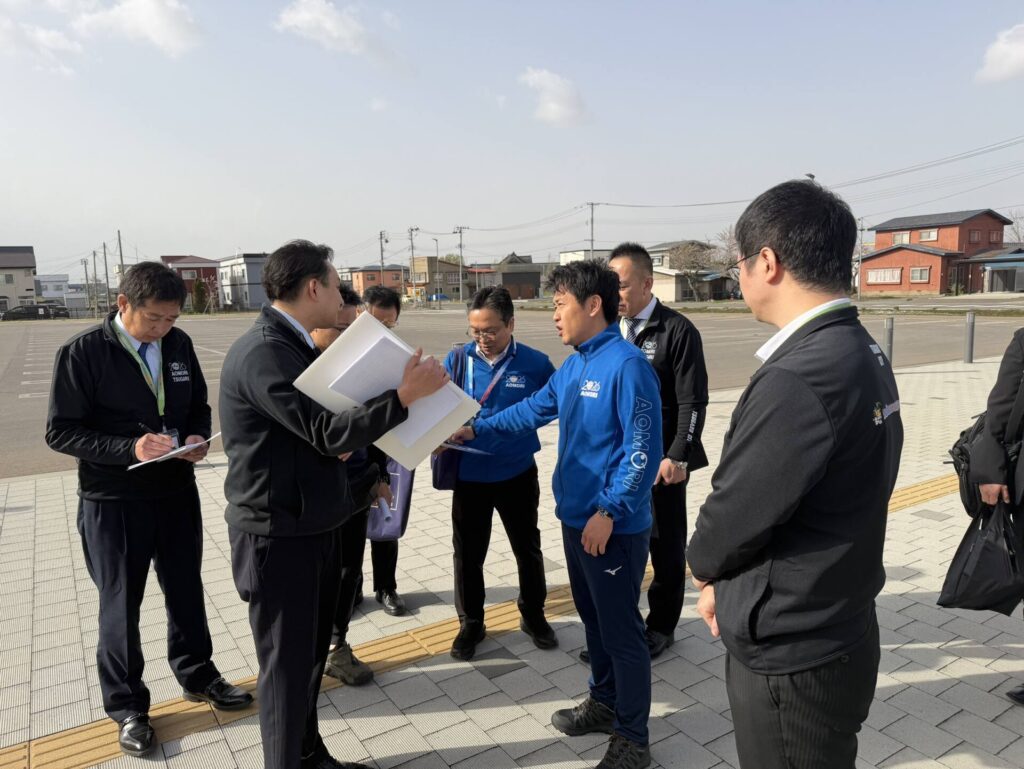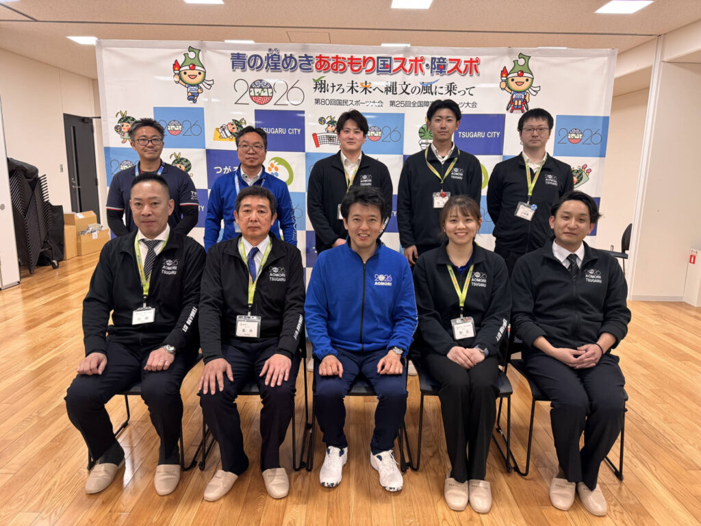 令和8年4月21日、伊藤鉱業アリーナつがるにおいて、青森県知事 宮下 宗一郎 様より、国スポ・障スポ担当職員に対し激励をいただきました。当日は、歓迎装飾に関するご助言もいただき、今後の準備に向けて大変参考となる機会となりました。